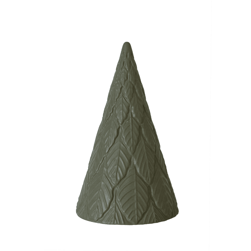 En dekorativ gran med fina lövdetaljer. Ett dekoration som är fin i sin ensamhet men också i grupp med andra.