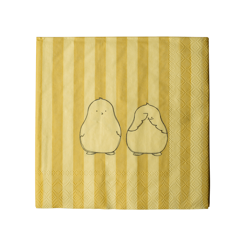Härliga servetter från DBKD, här kycklingar på randig botten.
