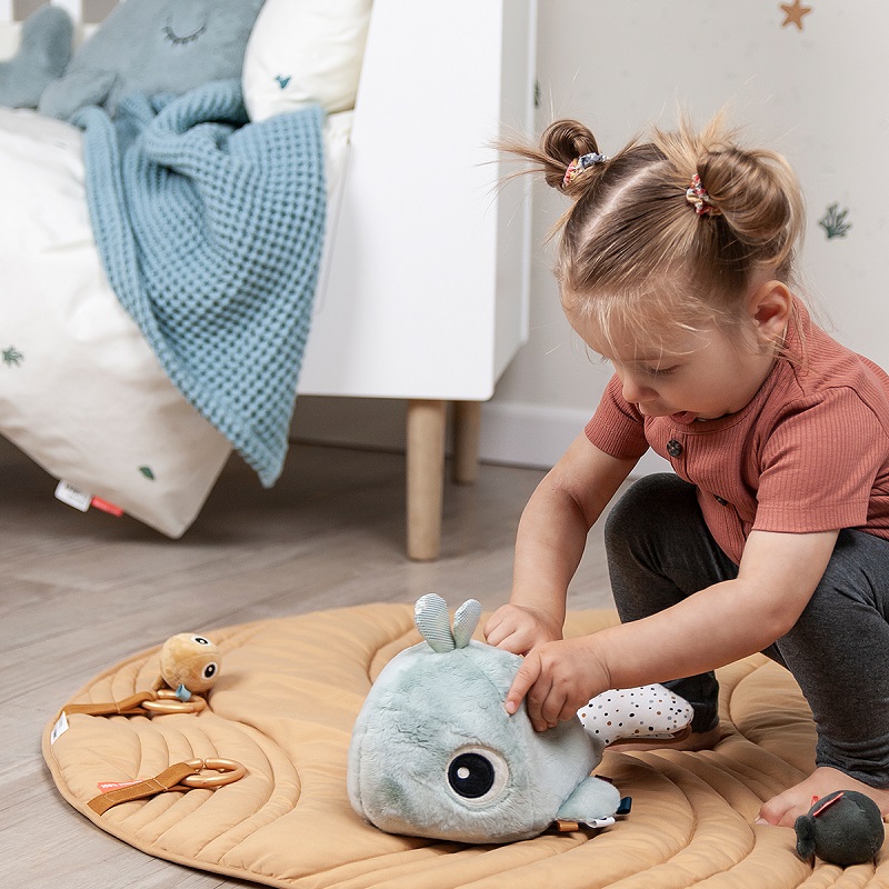Den lekfulla valen Wally älskar att simma med och leka kurragömma. Håll koll på de små fiskarna, se hur de snabbt gömmer sig inuti Wally. Varje fisk har sitt eget ljud och kommer att uppmuntra de små att krypa efter dem om de rullas.
