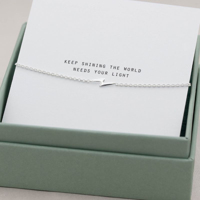 Blixten symboliserar ”Keep shining the world needs your light” kort med texten följer med smycket.