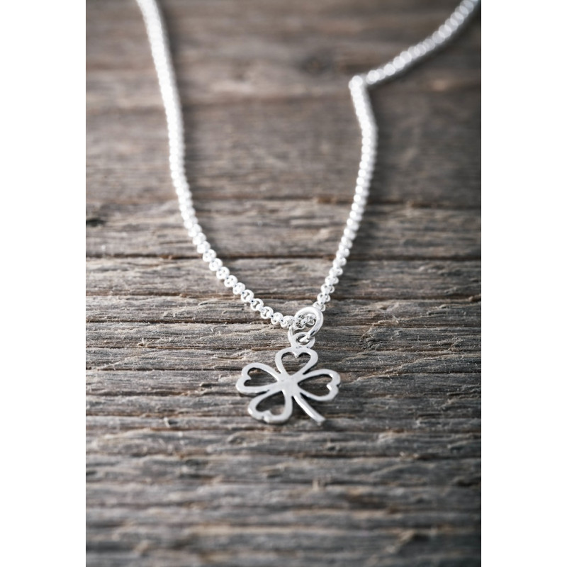 Silverhalsband med ett litet hänge i form av ett lyckoklöver. Klövern symboliserar vänskap och ger dig lite extra tur.