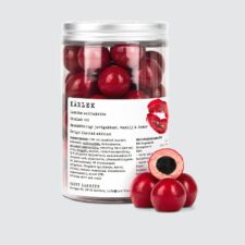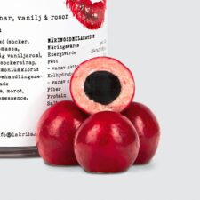 Ingredienser: 70% vit choklad (socker, kakaosmör, mjölkpulver, kakaomassa, emulgator: sojalecitin, naturlig vaniljarom), sirap, vetemjöl, socker, invertsockersirap, 3,5 % rålakrits (Kalabrien), ammoniumklorid (salmiak), salt, stjärnanis, ytbehandlingsmedel (karnaubavax), 5% frystorkade jordgubbar, färgämne (gurkmeja, morot, rödbeta), torkade rosenblad, rosessence. Kakaoinnehåll, minst 27%.