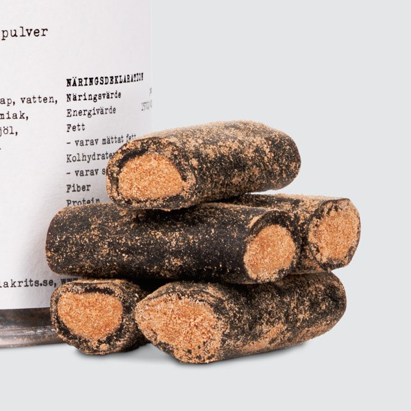 En gnutta salmiaksalt finns dock med för vi känner ju alla till att en kyss utan en mustasch är som lakrits utan salt.