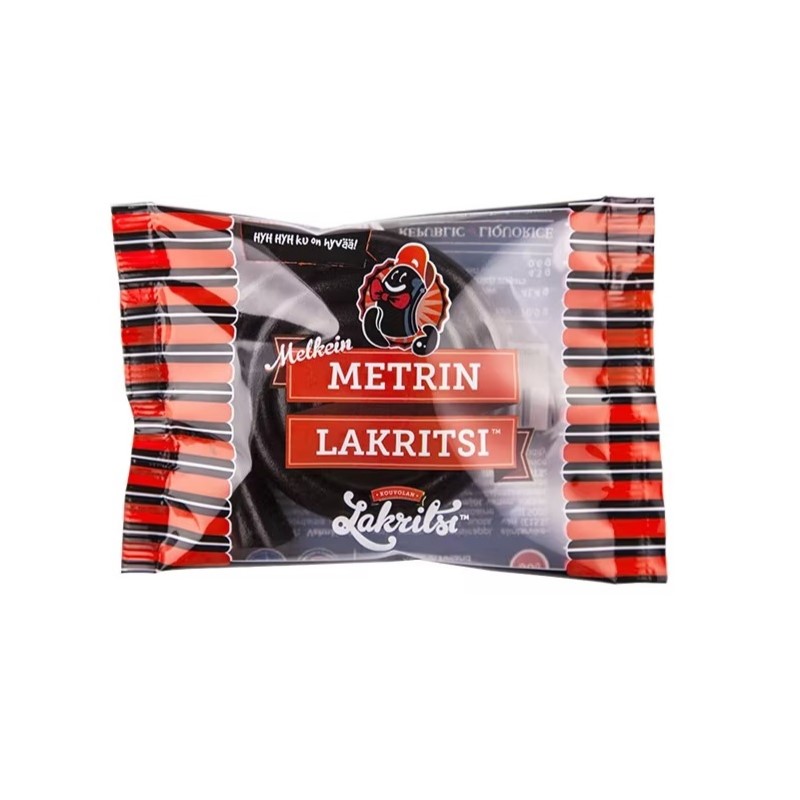 Ingredienser: Vetemjöl, vatten, socker, sockersirap, livsmedelsmelass, naturliga aromer (lakritsextrakt, anisolja), salt, färg (E153), emulgeringsmedel (E471), surhetsreglerande medel (E500), konserveringsmedel (E211, E202).