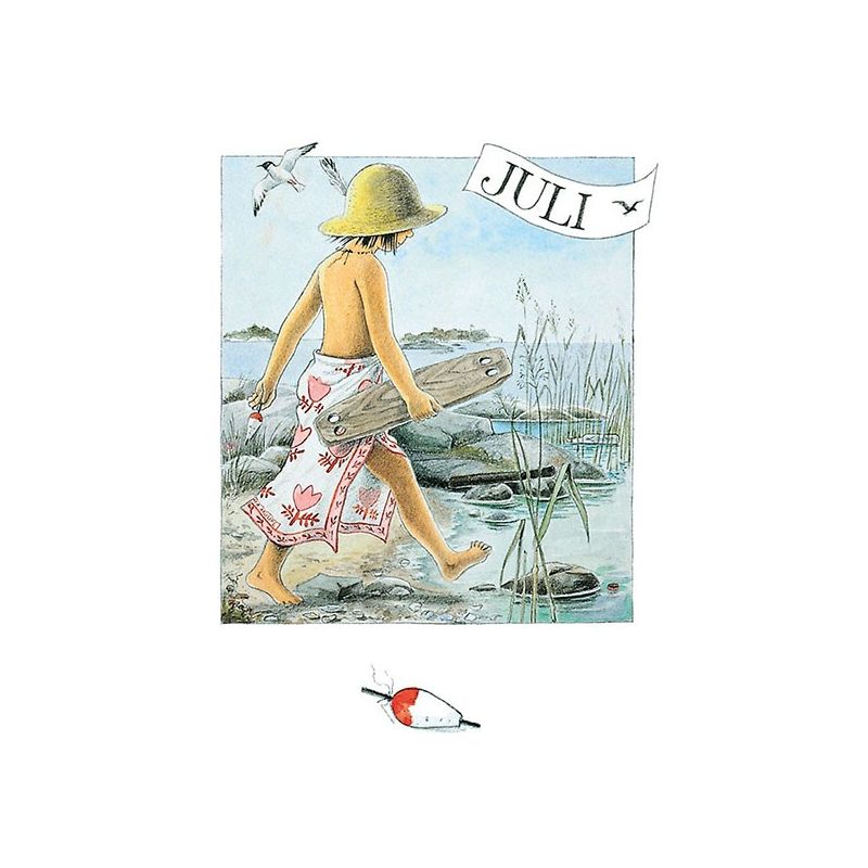 Månadsbild juli, hämtade från boken Linneas årsbok. Illustrationer av Lena Anderson.