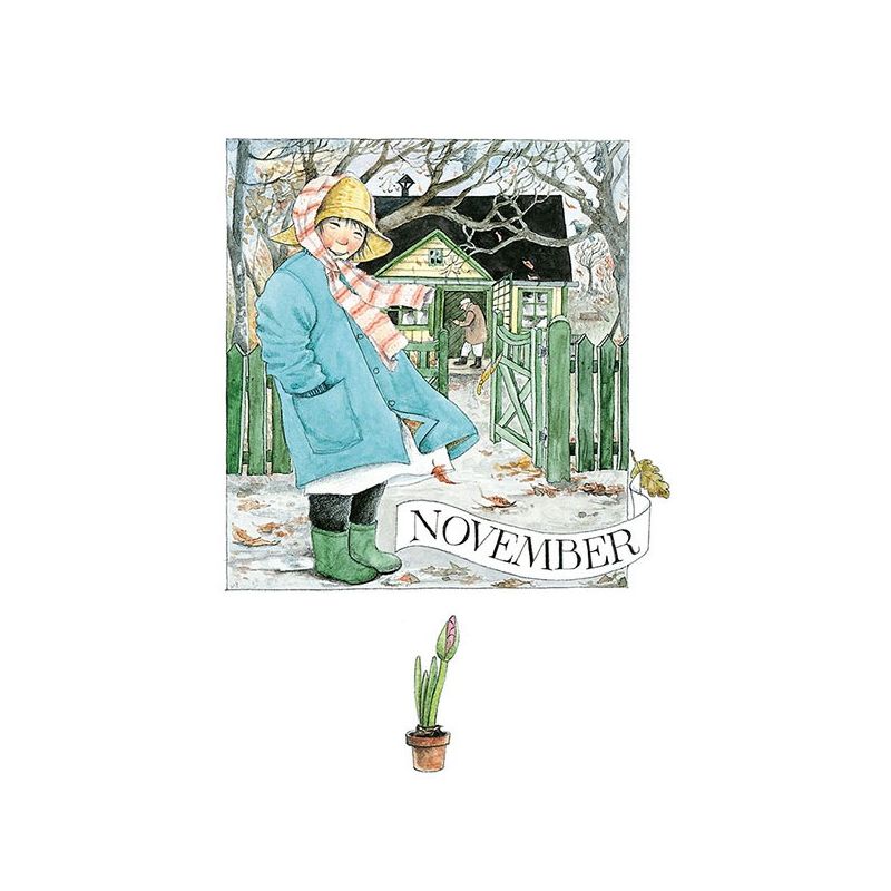 Månadsbild november, hämtade från boken Linneas årsbok. Illustrationer av Lena Anderson.
