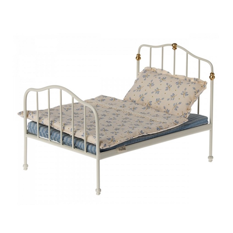 Låt dina Mailegvänner sova i den vackra säng av metall. Det ingår filt, madrass och kudde.