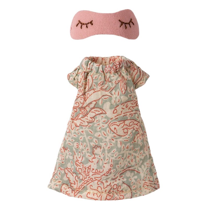 Mjuk nattlinne som ser till att mamma mus kommer att ha en god natts sömn och ögonmasken kommer att hålla ljuset ute.