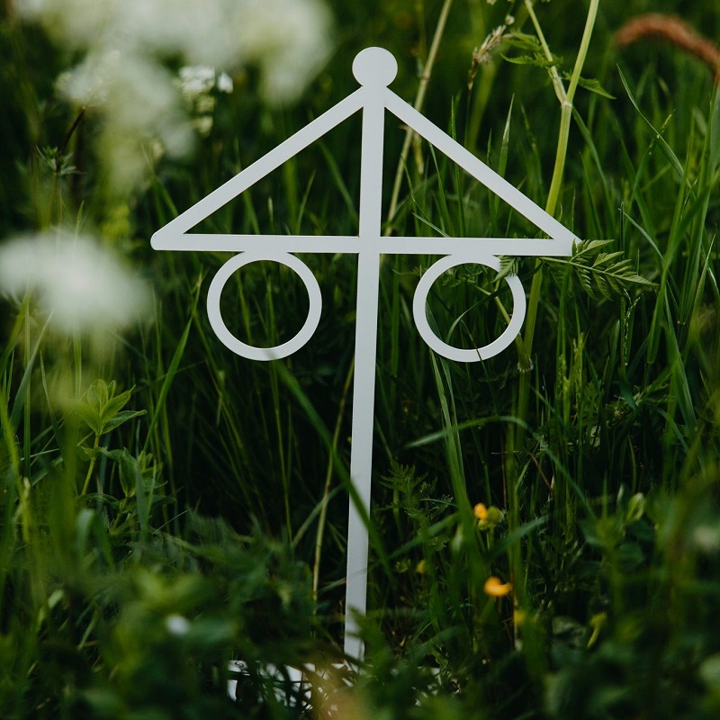 Stor midsommarstång i plåt. Ha den stående på byrån eller på bordet i midsommardukningen. Dekorera den med blommor och blad eller behåll den som den är.