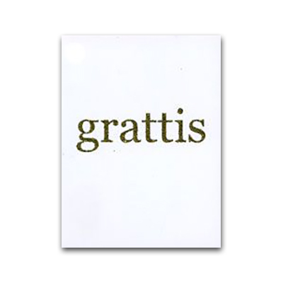 Kort ”Grattis” med snöre att fästa på present eller i bukett.
