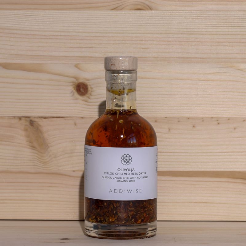 Ingredienser: Extra jungfru olivolja, naturlig arom chili & vitlök,oregano, chili flakes, chili jalapenjo flakes, vitlök 100% Ekologisk råvara