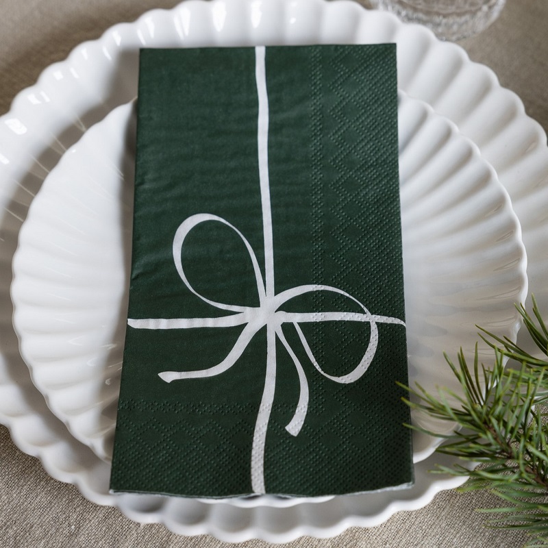 Pappersservett i form av ett paket, ger din dukning en liten extra detalj. Lika vacker i vardagen som till festen.