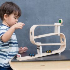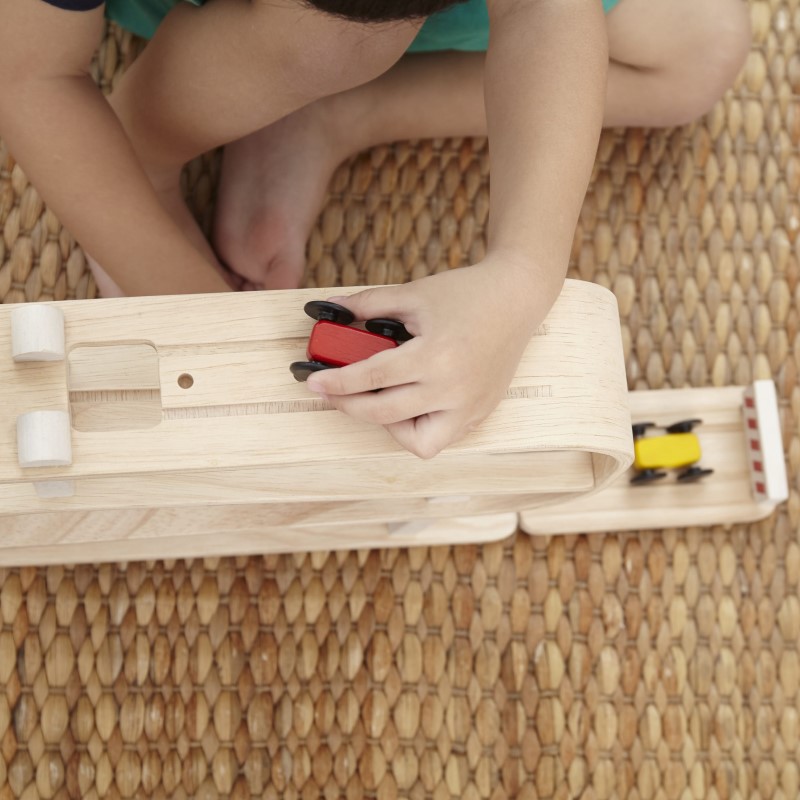 Fartfylld rolig nyhet! Bilar som kör snabbt nerför banan.