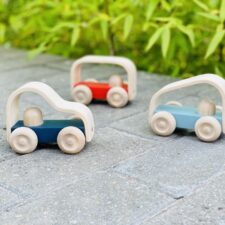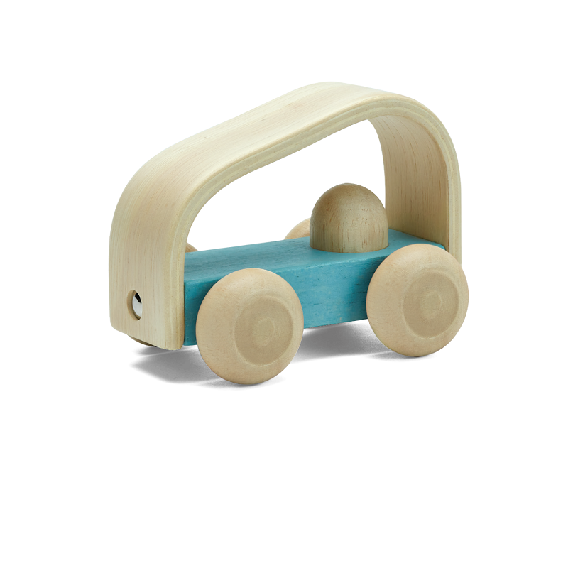 Fin träbil i gummiträ. Mjuka former perfekt för små händer att hålla och leka med.
