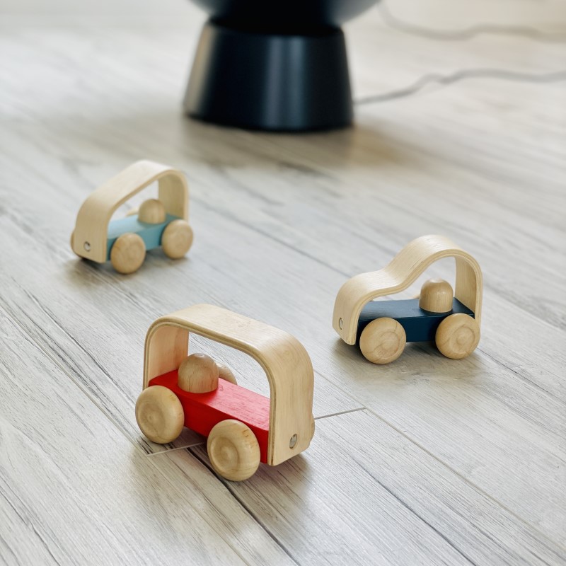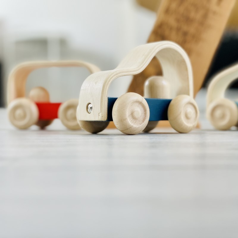 Fin träbil i gummiträ. Mjuka former perfekt för små händer att hålla och leka med.