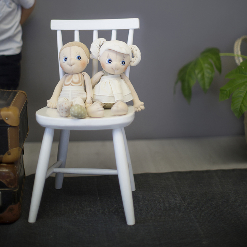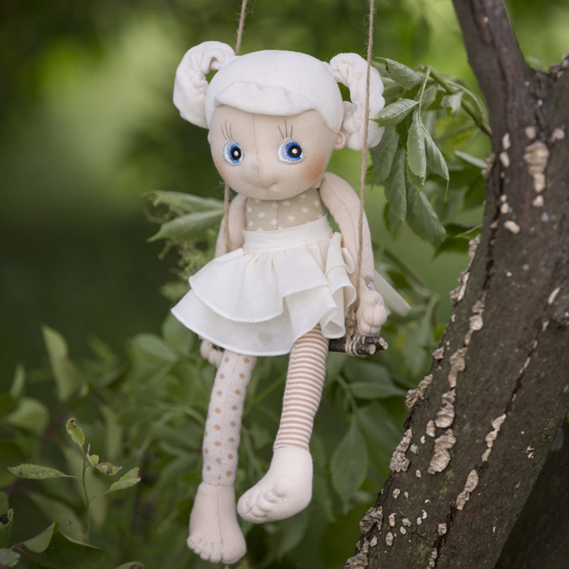 Daisy är en mjuk handgjord docka klädd i en prickig topp, randiga-prickiga leggings och med en avtagbar klockad kjol. Daisy kan vara en god vän åt både pojkar och flickor i alla åldrar. Innehåller inga farliga komponenter.