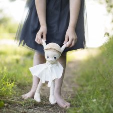 Hazel är en mjuk handgjord docka klädd i en randig topp, prickiga-randiga leggings och med en avtagbar klockad kjol. Hazel kan vara en god vän åt både pojkar och flickor i alla åldrar. Innehåller inga farliga komponenter.
