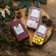 Ingredienser: Socker, mandel (20 %), kakaosmör, helmjölkspulver, kakaomassa, vasslepulver, laktos, emulgeringsmedel (sojalecitin), saffran, växtfärgskoncentrat (safflor), naturlig vaniljarom, ytbehandlingsmedel (E904), glukossirap, modifierad tapiokastärkelse, vegetabiliska oljor (kokos, raps) i varierande proportion. Mjölkchokladen och den vita chokladen innehåller min 30 % respektive 25 % kakaobeståndsdelar. Spår av hasselnöt, cashewnöt, paranöt & pekannöt kan förekomma.