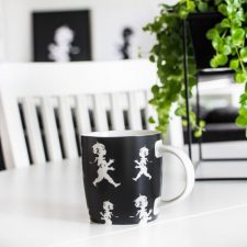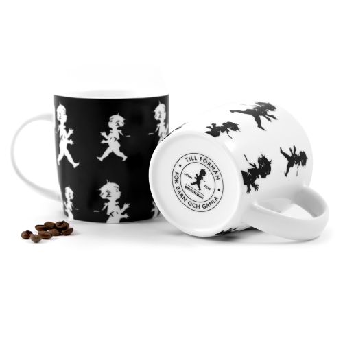 Mugg med repeterande mönster med avbildning av den klassiska Solstickepojken skapad av Einar Nerman 1936.