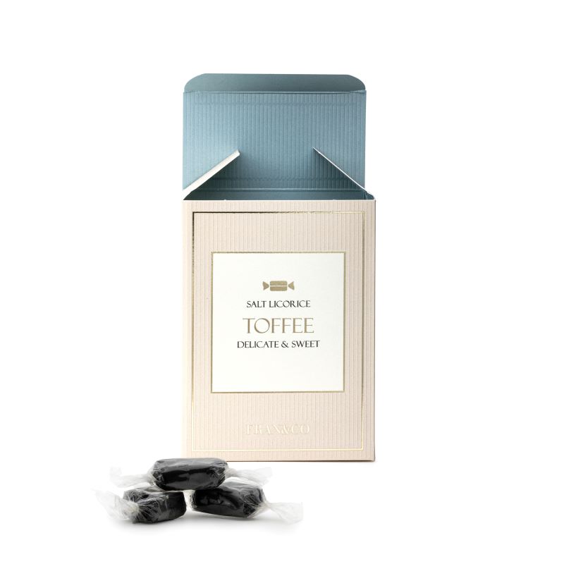 Ingredienser: Glukossirap, sockrad kondenserad mjölk (mjölk, socker), socker, vegetabiliskt fett (palm*, shea), salmiak, lakritspasta (lakritsrotextrakt, melass, glukossirap, vatten, maltodextrin, konserveringsmedel (E202)), salt, färgämne (E153), emulgeringsmedel (E322), aromämnen. Kan innehålla spår av mandel. *RSPO-Certifierad palmolja.