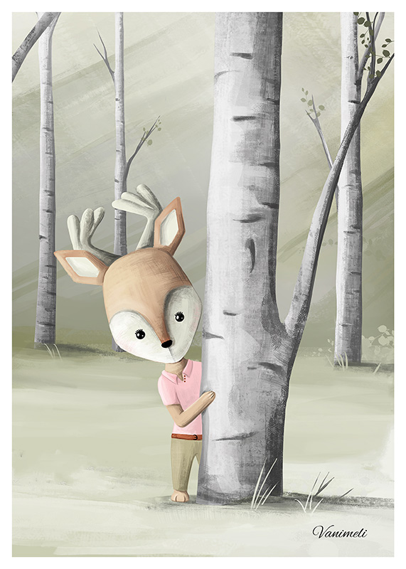 VaniMeli Poster ”Första Mötet” blir en fin inredingsdetalj till barnrummet med dess milda och fina naturfärger.