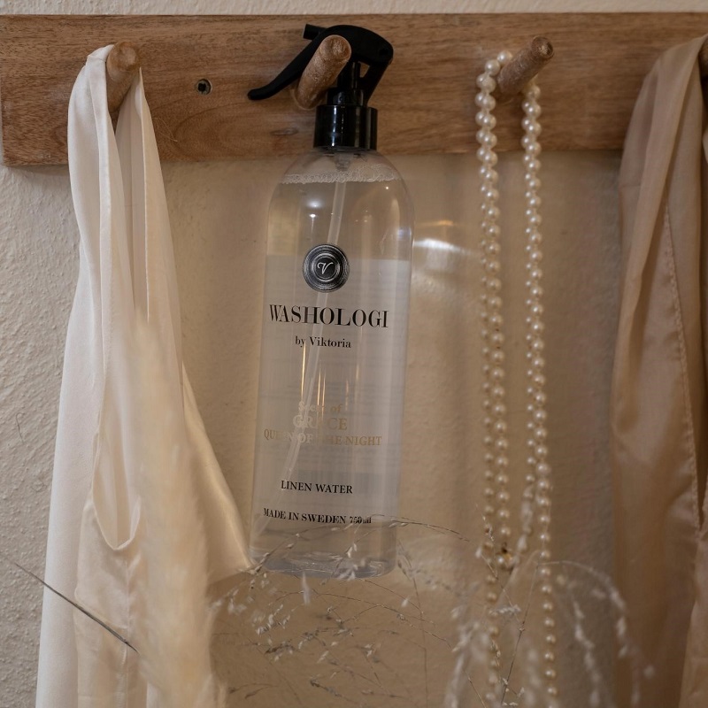 Washologi’s linnevatten Grace har en mjuk och behaglig doft av Nattens drottning. En bas av vanilj med inslag av syren och lilja, sprider den en doft lika magisk som blomman själv. Dess närande effekt ger dina plagg en nytvättad känsla. För att fräscha upp dina plagg, spreja dem med linnevattnet mellan tvättarna och efter att du steamat eller strukit dem. Använd helt enkelt på allt du vill ge en härlig doft. Linnevattnet är biologiskt nedbrytbart och innehåller inga färgämnen – för miljön och framtiden.