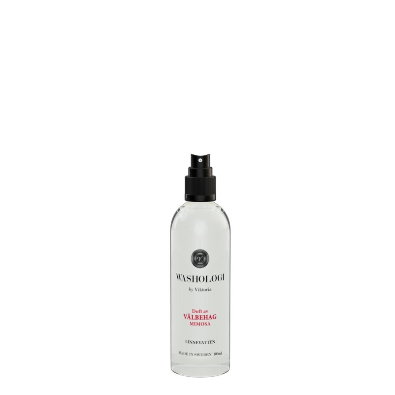 Washologis Linnevatten Välbehag ljuvligt doftande och vårdande ger en nytvättad känsla och en rofylld doft av mimosa. Använd på dina plagg som en uppfräschning eller till annat du vill ska dofta gott! För miljöns skull innehåller våra linnevatten inga färgämnen eller polycyklisk musk och vi använder endast naturligt extrakt i parfymen. Minskar statisk elektricitet.